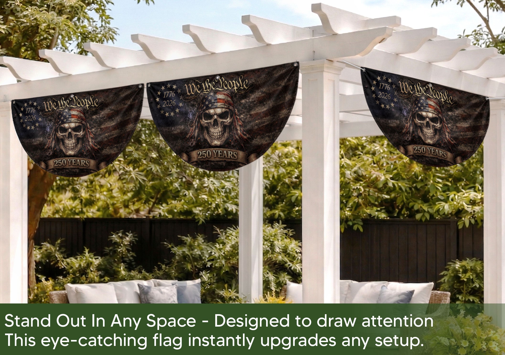 We The People Skull Fence Flag 250 Years 1776-2026 Double Sided Patriotic Banner