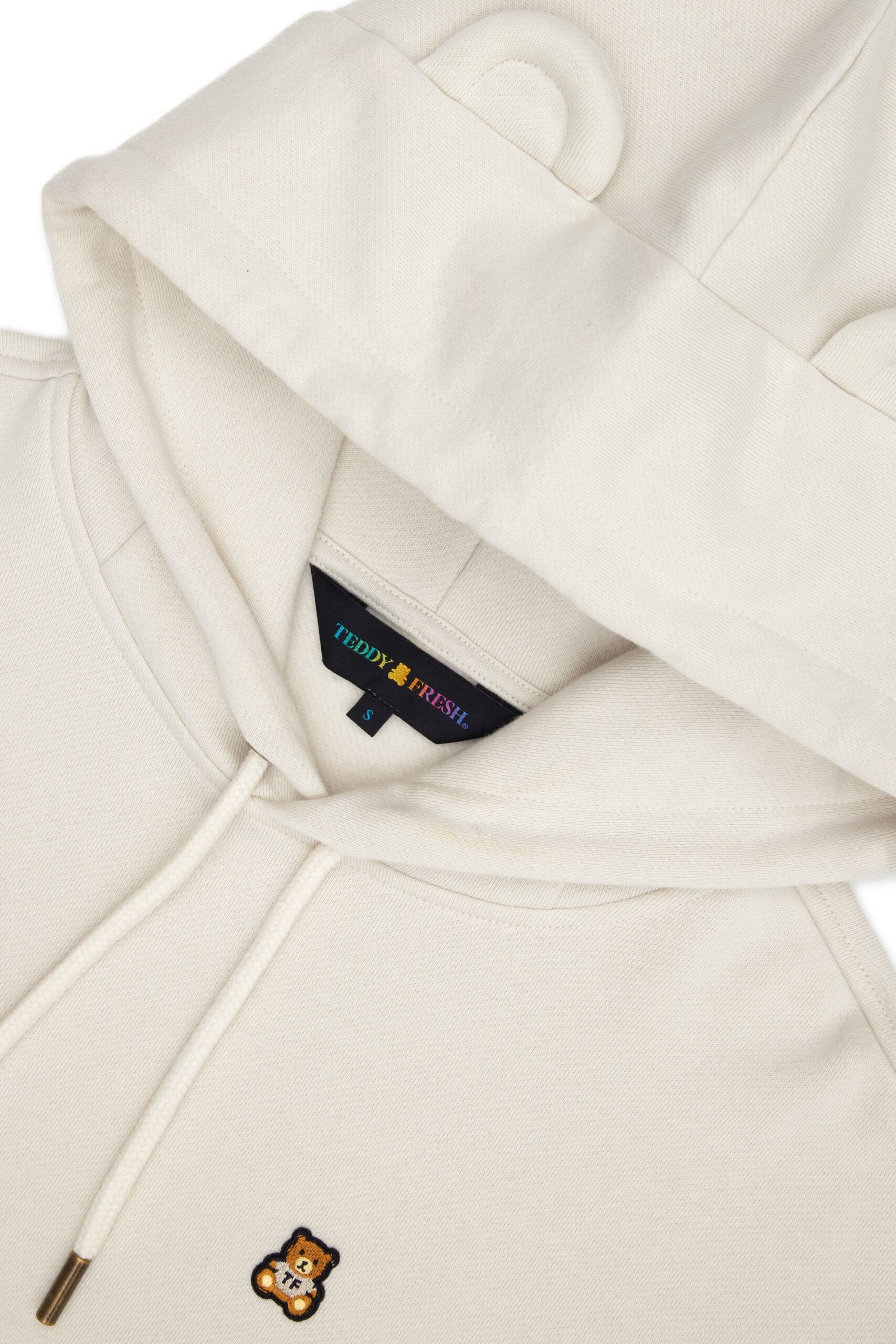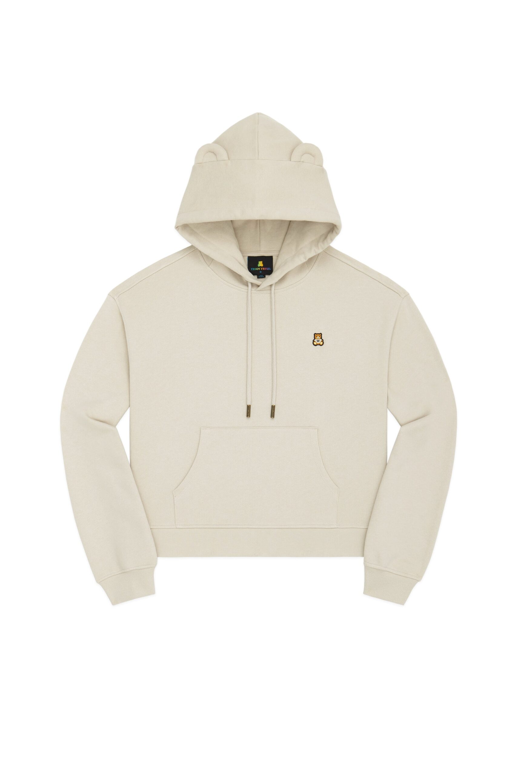 DETAILS Fleece hoodie with bear ears Braided drawcord hood with with debossed metal aglets Embroidered bear patch on chest Ribbed cuffs and waistband Kangaroo pocket 100% Pre-shrunk cotton fleece, 320gsm, fabric piece dyed FIT Women’s boxy fit Size Medium: Chest: 41.5″ Length: 22″ (measured flat) Sabrina is 5’7″ and wearing size S Model’s chest/bust: 34″ Model’s waist: 27″ Izabella is 5’7″ and wearing size M Model’s chest/bust: 33″ Model’s waist: 26.5″ Model’s hip: 37″ Aurora is 5’6″ and wearing size XS Model’s chest/bust: 34″ Model’s waist: 27″ Melanie is 5’7″ and wearing size XL Model’s chest/bust: 36″ Model’s waist: 31″