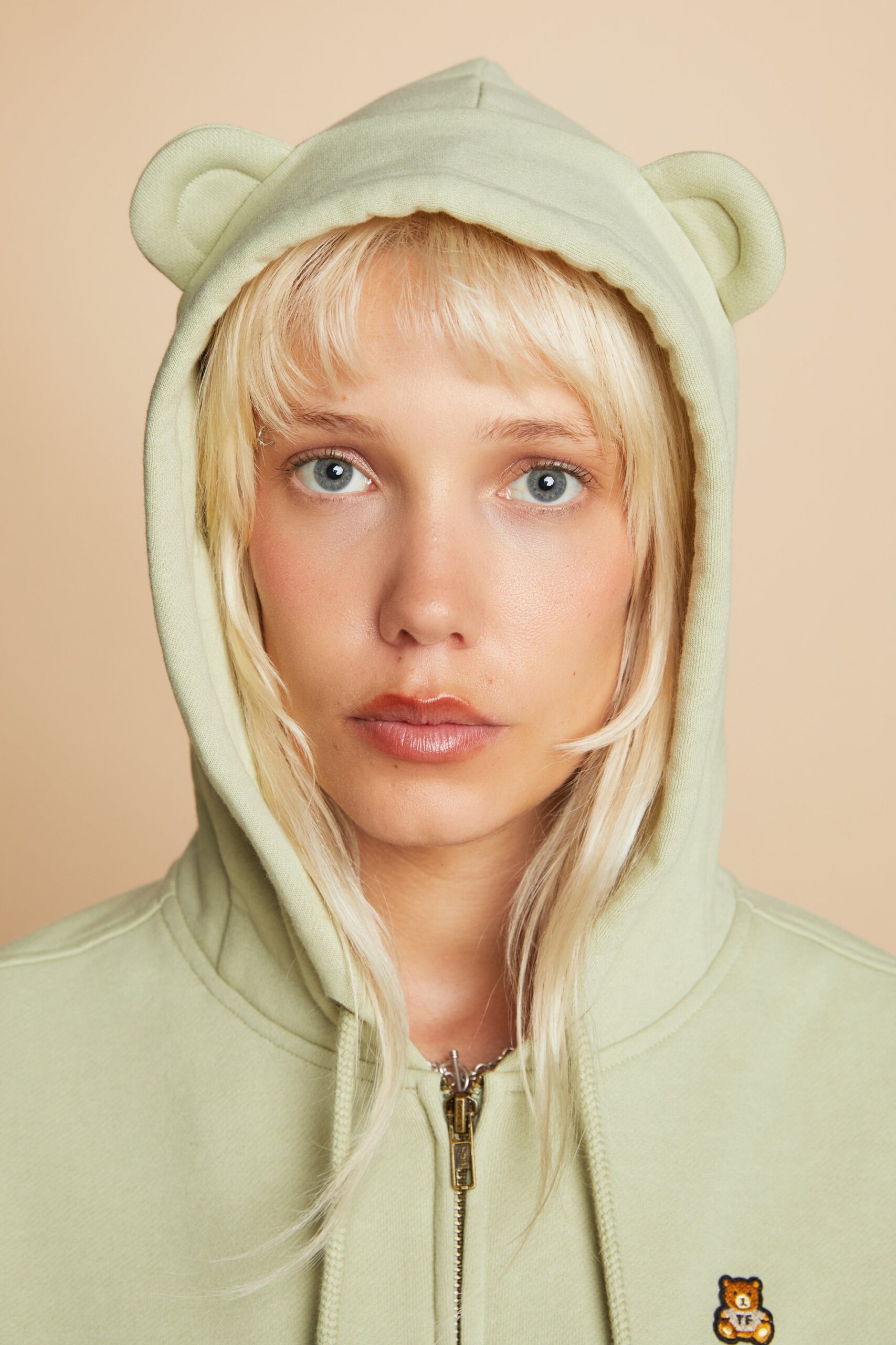DETAILS Full zip-up fleece hoodie with bear ears Braided drawcord hood with with debossed metal aglets Embroidered bear patch on chest Ribbed cuffs and waistband Split kangaroo pocket 100% Pre-shrunk cotton fleece, 320gsm, fabric piece dyed FIT Women’s boxy fit Size Medium: Chest: 41.5″ Length: 22″ (measured flat) Sabrina is 5’7″ and wearing size S Model’s chest/bust: 34″ Model’s waist: 27″ Izabella is 5’7″ and wearing size M Model’s chest/bust: 33″ Model’s waist: 26.5″ Model’s hip: 37″ Aurora is 5’6″ and wearing size S Model’s chest/bust: 34″ Model’s waist: 27″ Melanie is 5’7″ and wearing size XL Model’s chest/bust: 36″ Model’s waist: 31″